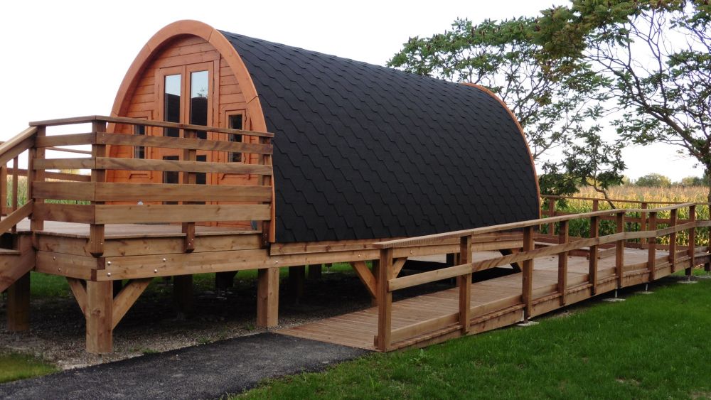 The campsite has a POD with disabled access on the banks of the lake, with a ramp for people with reduced mobility. The PODs are unique facilities with a warm, cosy feel thanks to their wooden construction and stilts, which will give you the feeling of being in a little nest for the duration of your stay. The beach is just 200m away.